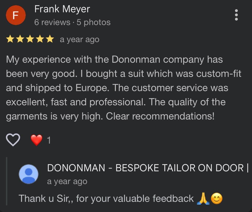Yes, Dononman – Bespoke Tailoring Service at Your Door offer a 3-day custom tailoring service for select outfits. Availability depends on fabric selection and design complexity. Contact us to check if your order qualifies.